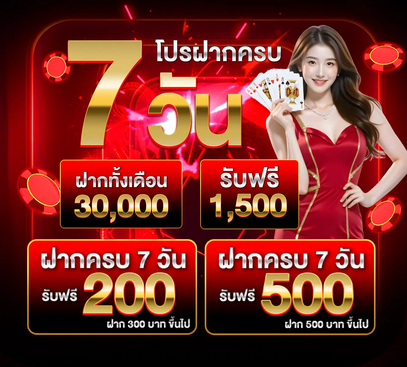 ตอบ : - โบนัสต้อนรับสมาชิกใหม่ 100% - คืนยอดเสีย 10% ทุกสัปดาห์ - แนะนำเพื่อนรับค่าคอมมิชชั่น - กิจกรรมแจกเครดิตฟรีประจำเดือน - โบนัสฝากประจำวัน